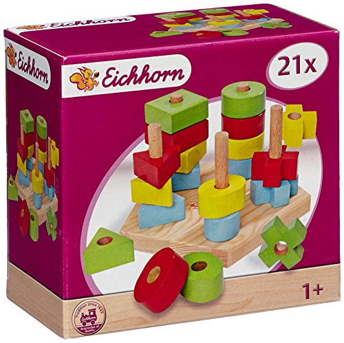 KAUFEN Eichhorn 100002087 - Steckplatte, 21-teilig, holz natur/bunt - 19x17,5x10,5 cm - 5 verschiedene Stecksymbole -