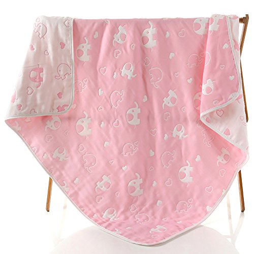 Verkauf ONLY ONE YOU Babydecke / Kinderdecke / Strickdecke, 100% Baumwolle, 6 Schichten Gaze, 110 x 110 cm, Elefant, Rosa