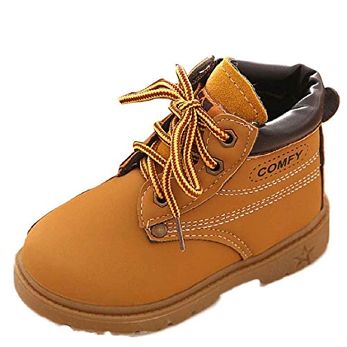 OverDose Unisex-Baby weiche warme Winter Baby Kind Armee Art Mode Gummisohle Martin Stiefel warme Schuhe mit Baumwolle (1-6 Jahre alt) (21, Gelb)